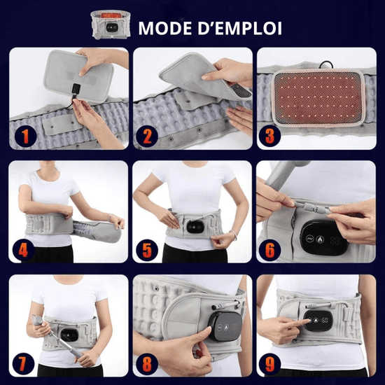 Offrez à votre dos un soulagement immédiat grâce à cette ceinture chauffante électrique multifonction. Chauffage infrarouge, massage vibrant et décompression lombaire dans un seul appareil.