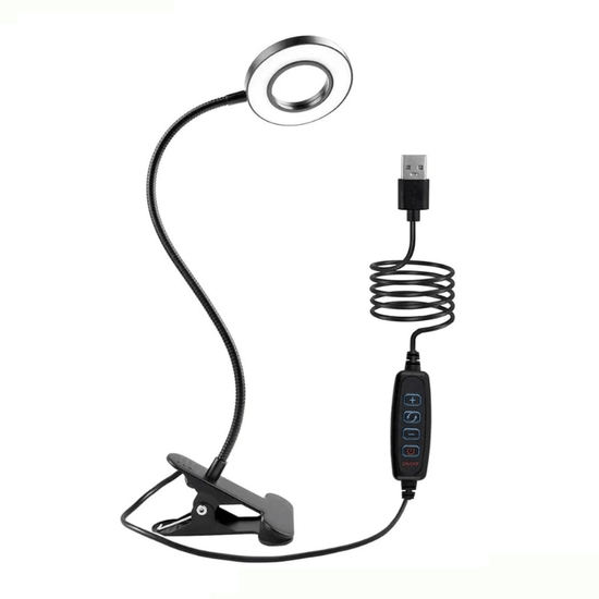 Lampe de bureau LED à pince avec col de cygne 360°, lumière ajustable, 3 modes de couleurs et 10 niveaux de luminosité. Idéale pour la lecture, le télétravail et la visioconférence.
