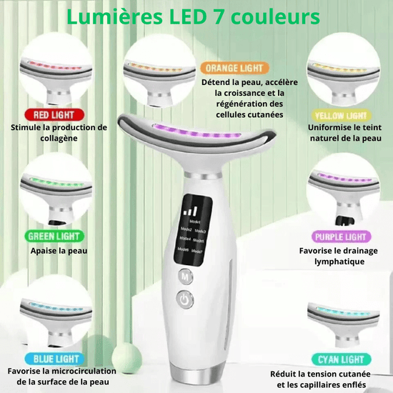 Ce masseur anti-âge visage rechargeable stimule la peau grâce à des micro-vibrations, 7 modes de soins et un design ergonomique. Il lisse les rides et raffermit naturellement le cou, le menton et le contour du visage.