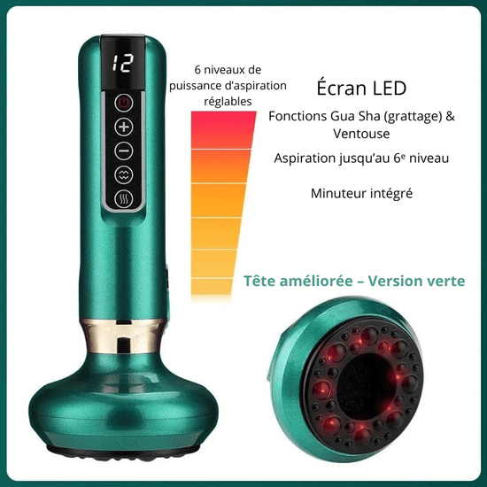Ce masseur anti-cellulite ventouse 6 niveaux combine cupping, vibration et scraping pour améliorer la circulation sanguine, éliminer les toxines, réduire la cellulite et raffermir la peau. Compact, efficace, facile à utiliser.