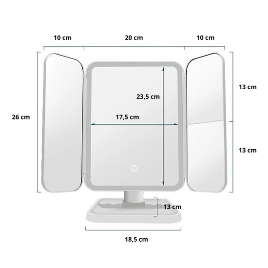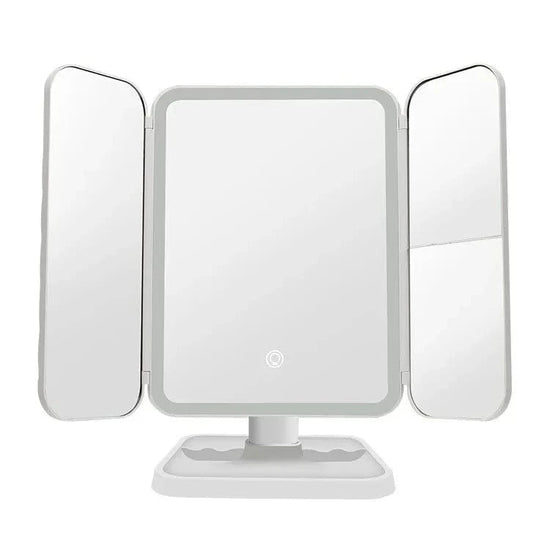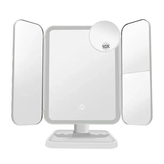 Ce miroir lumineux trifold est l'accessoire indispensable pour un maquillage parfait. Disponible avec ou sans loupe x10, il offre un éclairage LED doux et une vision complète pour un maquillage de précision.