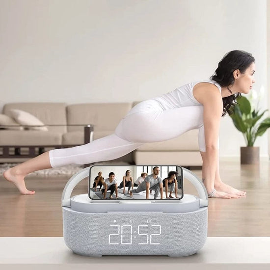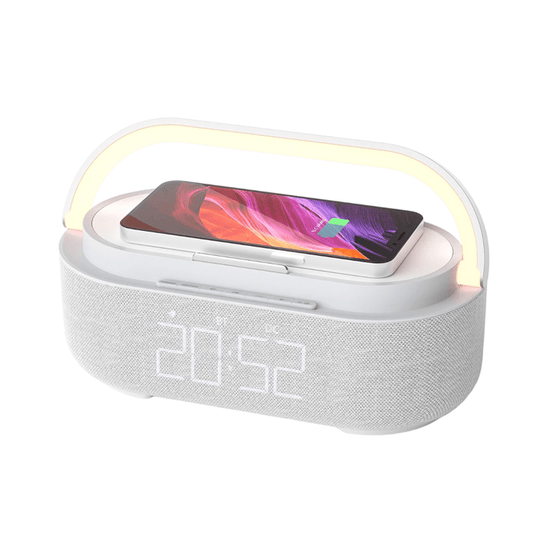 Profitez d’un radio réveil multifonction moderne, combinant lampe LED tactile, enceinte Bluetooth, réveil avec alarme snooze, radio FM et chargeur à induction 15W. Idéal pour la chambre, le bureau ou comme idée cadeau.