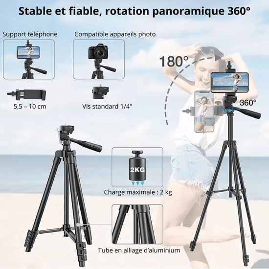 Ce trépied Bluetooth pour téléphone est idéal pour filmer, prendre des selfies, faire des lives ou capturer des vidéos professionnelles. Léger, stable et compatible avec tous les smartphones et caméras.
